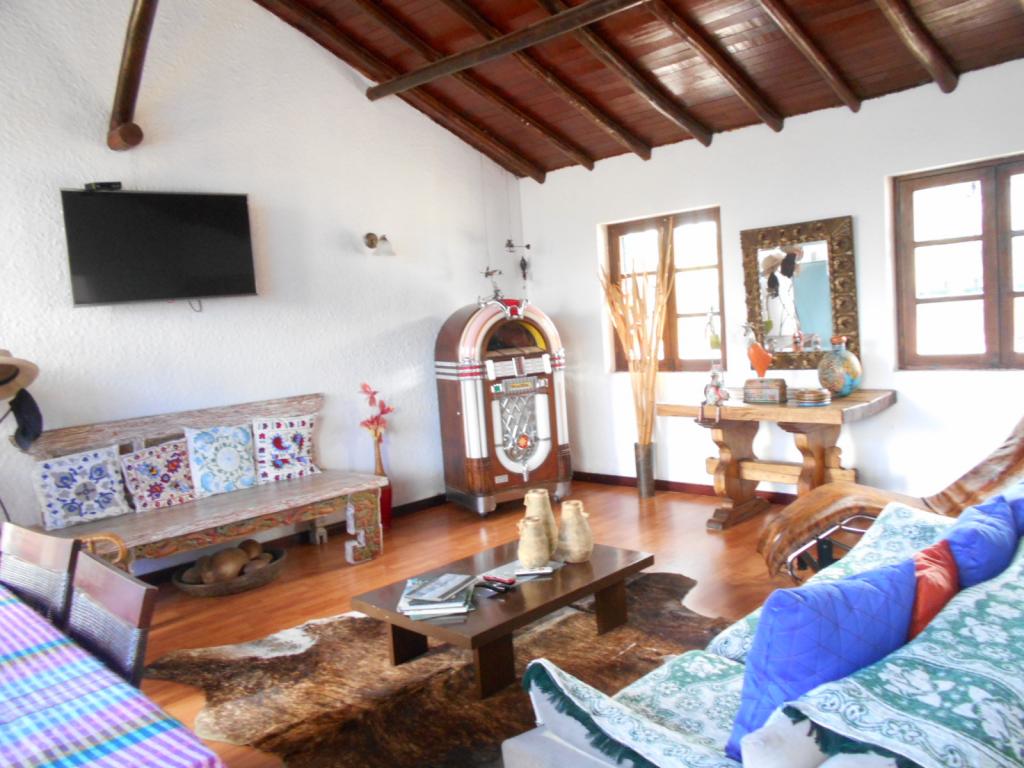 Hermosa finca de producción, área total del terreno 4.9 fanegadas, cuenta con 3 construcciones, casa principal de 241 mts, 3 habitaciones, sala comedor en el mismo ambiente, cocina tradicional, 2 baños, casa auxiliar 78 mts cuenta con terraza con BBQ, 1 habitación con baño privado, chimenea y jacuzzi, sala con chimenea, comedor independiente, balcón con linda vista, cuenta con arboles frutales, lago, terreno para siembra, caballeriza y casa de cuidanderos, se encuentra ubicada a tres cuadras del parque principal.