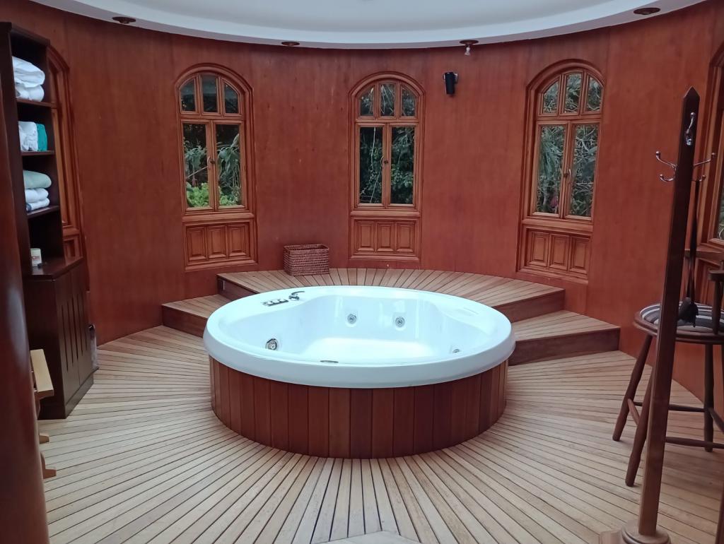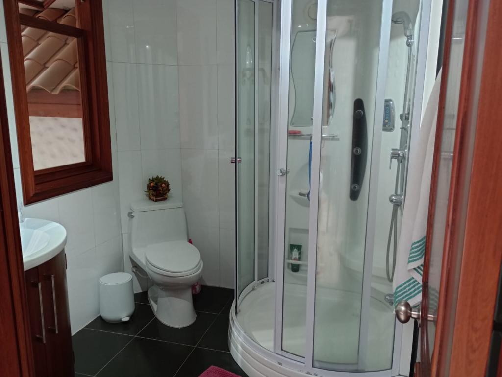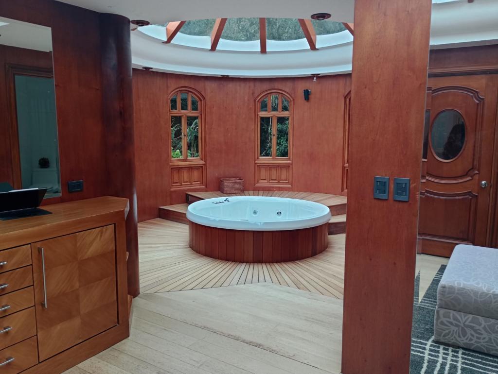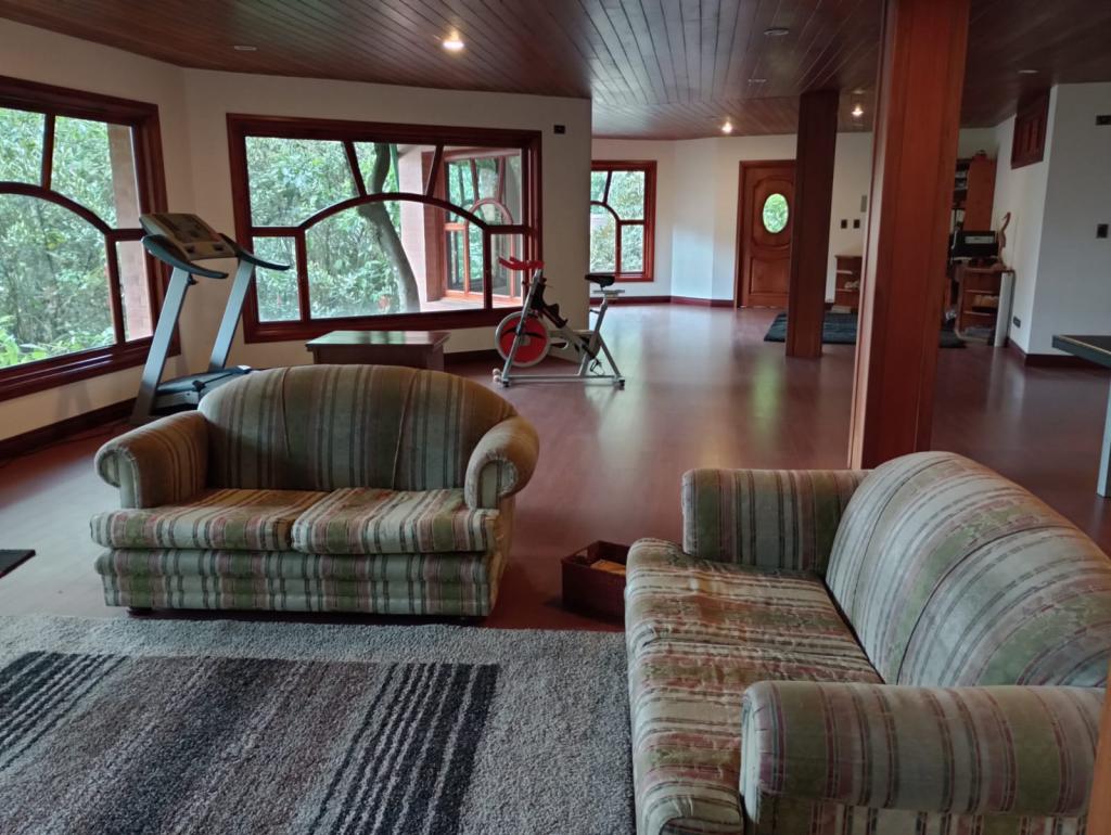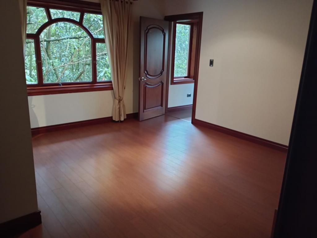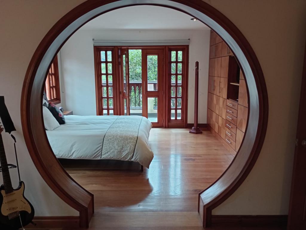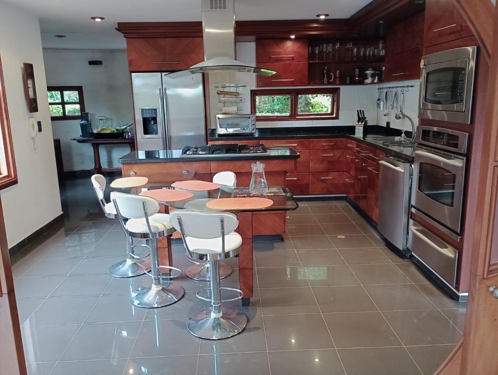 Hermosa casa de 2 pisos, 5 alcobas, cada alcoba con su baño, 2 de las habitaciones con estudio y chimenea a leña, cuarto y baño de servicio, 7 baños en total, sala de estar, sala comedor independientes, estufa y calentador a gas propano, 4 chimeneas, la habitación principal cuenta con jacuzzi, suana, salon social o de eventos, vestier y chimenea, pisos en madera, deposito, 4 garajes cubiertos, área construida de 800 mts, área lote 4000 mts, en lindero con el predio pasa quebrada natural, cuenta con acabados en madera maciza, parqueadero para visitantes, cuenta con una linda terraza para bbq, senderos peatonales, linda vista a las montañas, ubicada en exclusivo conjunto en la carrera 7.