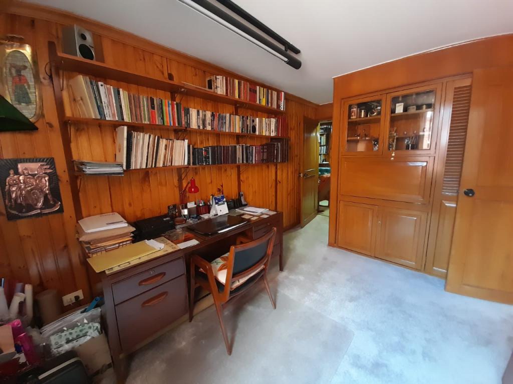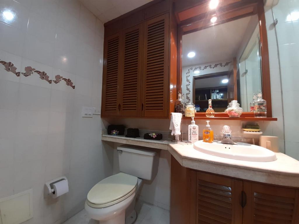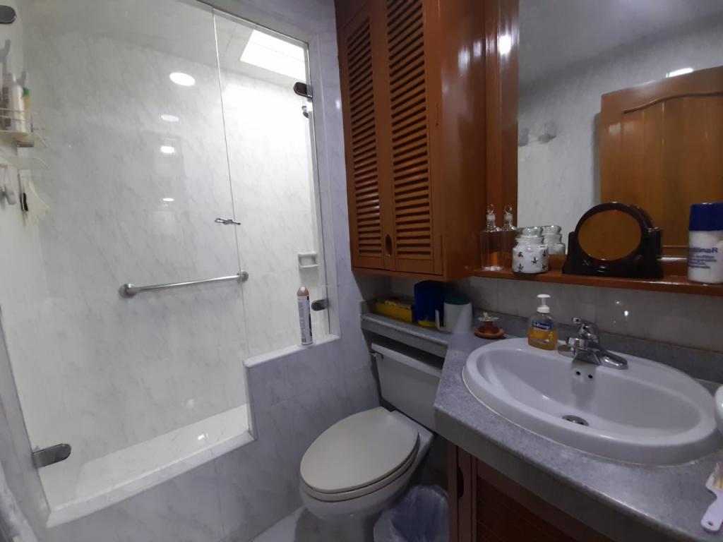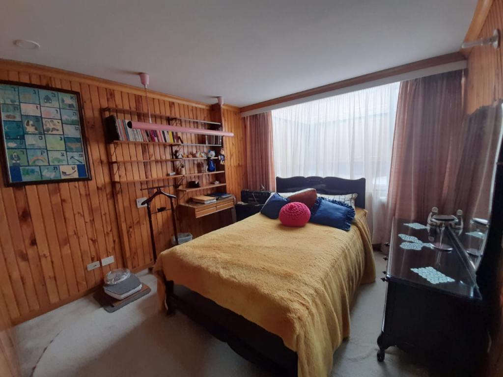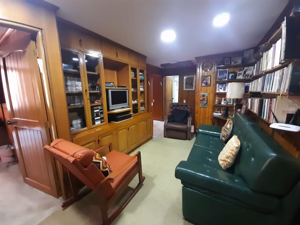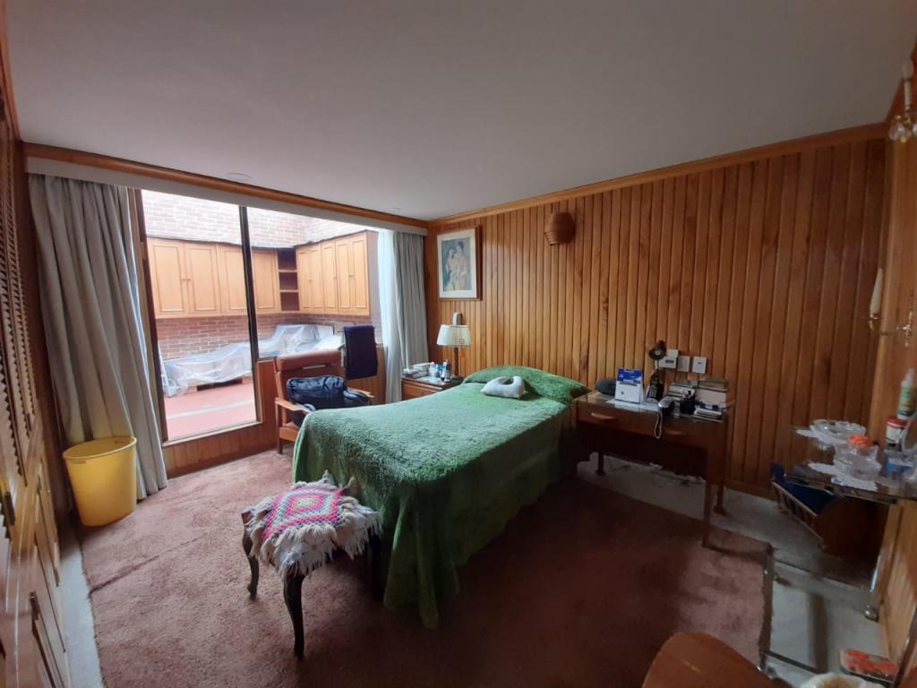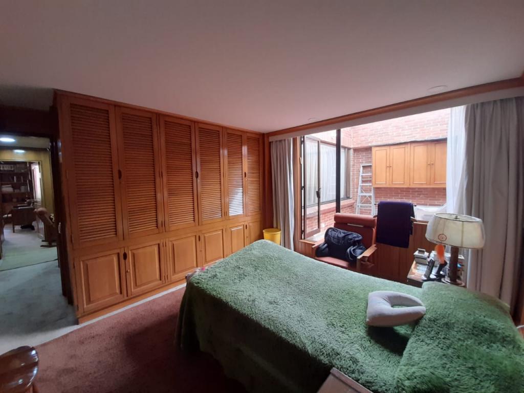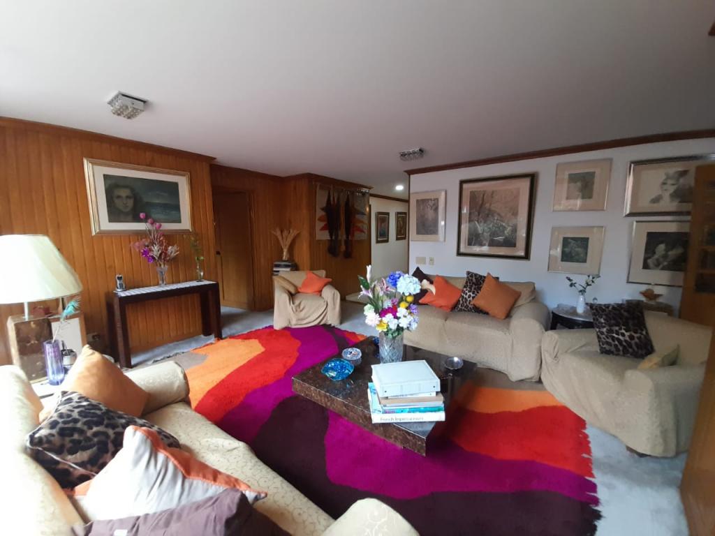 Excelente apartamento de 4 alcobas, la principal con baño privado, baño de alcobas, baño social y área de servicio con alcoba y baño. Dispone de estudio, sala de estar, sala y comedor independientes, chimenea y cocina con estufa mixta y calentador a gas. Los pisos en cerámica y alfombra complementan sus espacios, que incluyen dos terrazas con vista interior. Cuenta con 4 garajes independientes y depósito. Ideal para remodelar o adecuar a sus necesidades. Ubicado en edificio con salón comunal, zona BBQ y excelente localización cerca del Parque de la 93, zonas comerciales y vías principales.