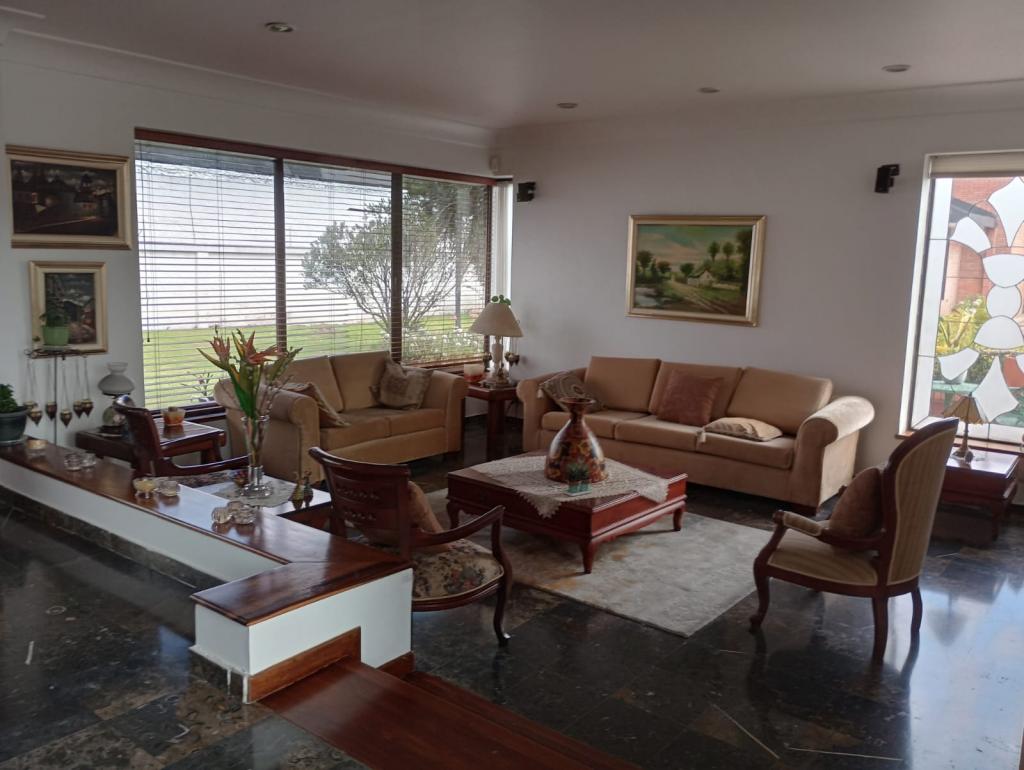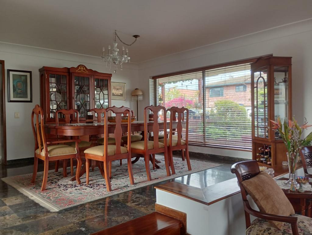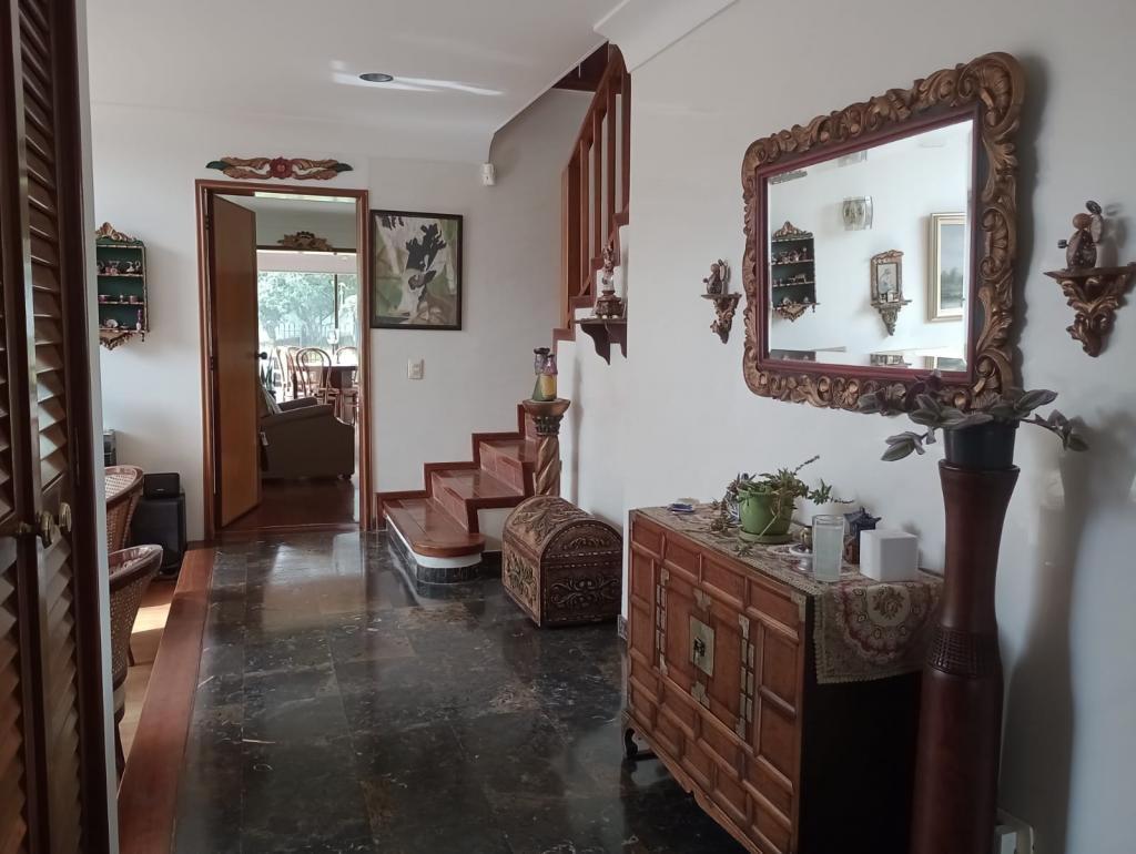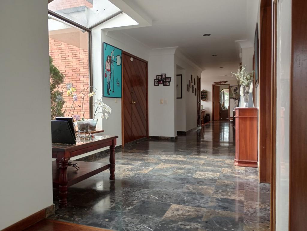 Espectacular casa de 4 alcobas, baño en la alcoba principal el cual cuenta con Vestier, jacuzzi, con luz natural, baño de alcobas, baño social, baño en cuarto de servicio, estudio, 3 salas independientes, comedor, 3 chimeneas tradicionales, estufa a gas, 2 calentadores de paso a gas, pisos en madera, mármol, laminado y cerámica, deposito amplio, 3 terrazas, cuenta con un altillo de 12mts, bar, cuarto de huéspedes, la casa cuenta con 6 garajes descubiertos, pintura veneciana, planta eléctrica, área construida 480mts, en un lote de 600 mts, tanque de recolección de aguas lluvias para uso de jardines.
