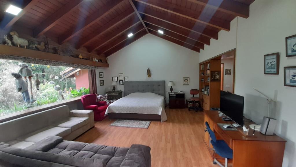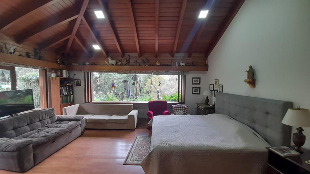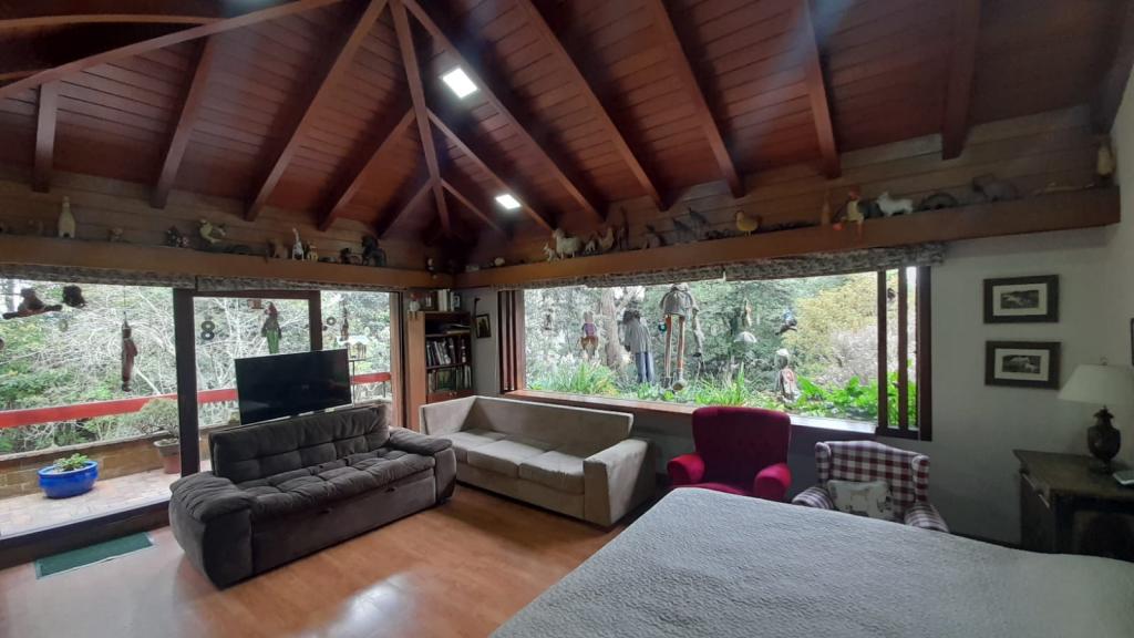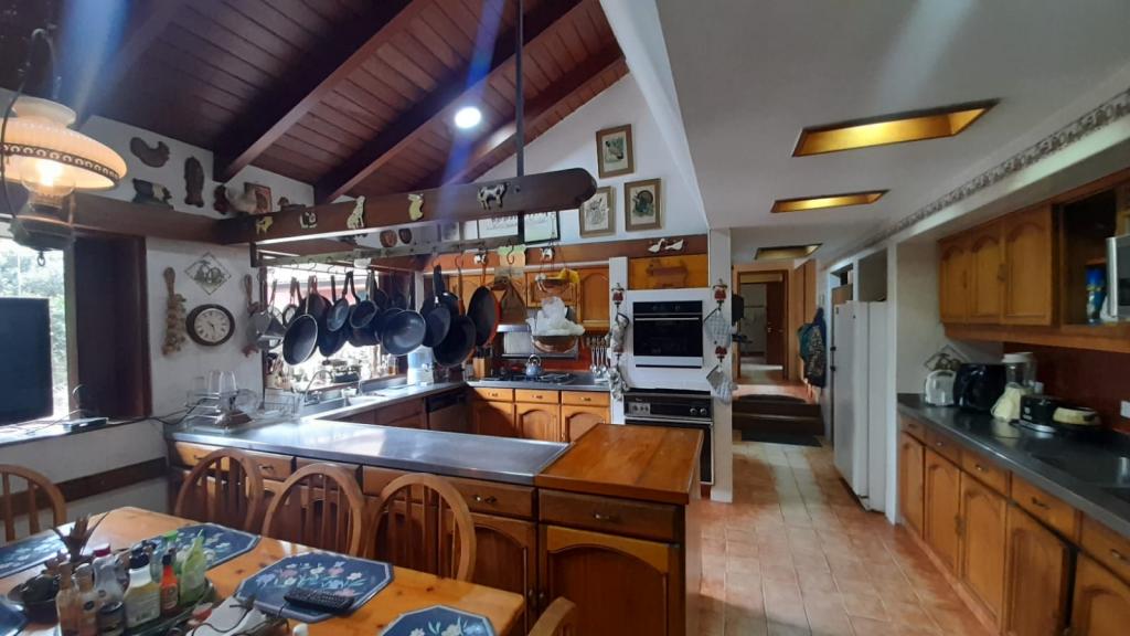 Espectacular casa de 634 m² construidos en un lote de 7.644 m², rodeada de naturaleza y amplias zonas verdes. En el primer nivel cuenta con sala de estar, sala comedor independiente, dos chimeneas, estudio con salida al jardín, alcoba principal con estudio privado, walking closet y baño con tina, además de dos cocinas, despensa, dos zonas de lavandería, cuarto y baño de servicio, cuarto de conductores y patio. En el segundo nivel dispone de 2 alcobas, cada una con baño, sala de estar, área de depósito y salida directa a las zonas verdes. La casa ofrece espacio para 4 garajes cubiertos y 8 descubiertos, 2 cuartos de herramientas, pozo, huerta, áreas verdes y sistema de motobombas. Su ubicación es estratégica, cerca de la escuela de carabineros, en un entorno tranquilo y seguro.