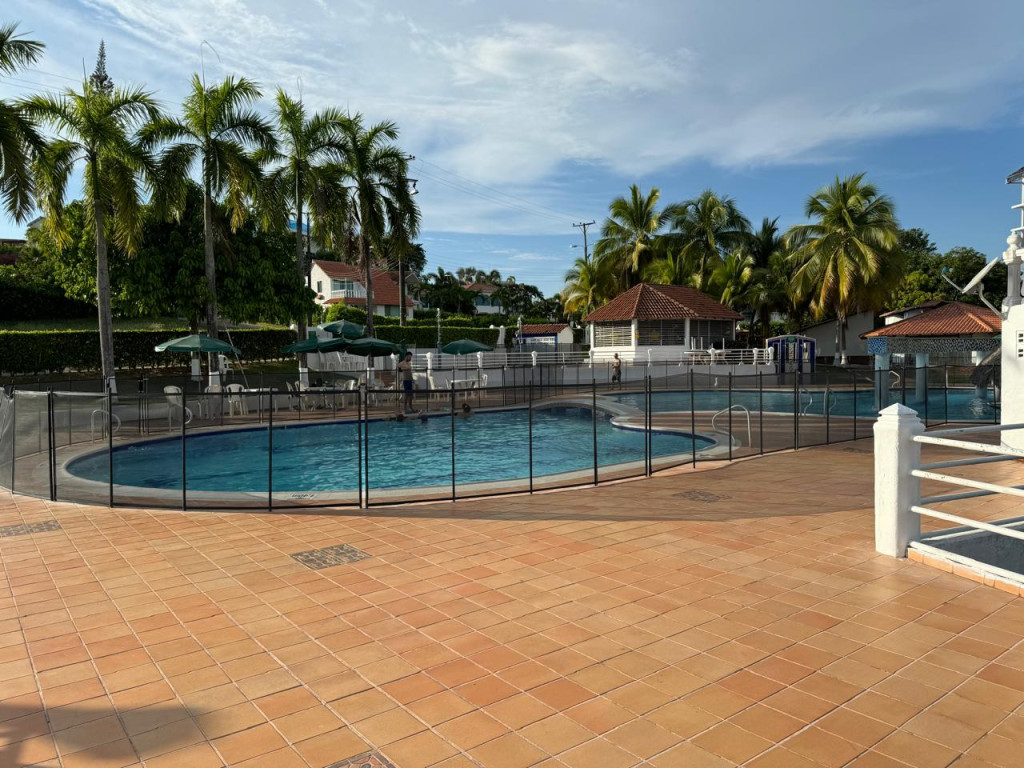 Casa en condominio, linda vista, cuenta con piscina de 80 mts, y jacuzzi, área de BBQ y lindos jardines, la casa tiene un área de 204 mts cuenta con 7 habitaciones, 5 baños, 2 habitaciones con baño privado, sala comedor independiente, sala de tv, cocina, 2 parqueaderos descubiertos, pisos en cerámica, cuarto de maquinas, área de terreno 450 mts, amoblada, se encuentra ubicada a 10 minutos del parque principal, se recibe apto en Bogotá al norte hasta el 50% del valor . se vende a puerta cerrada.
