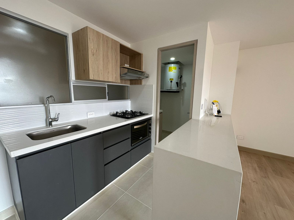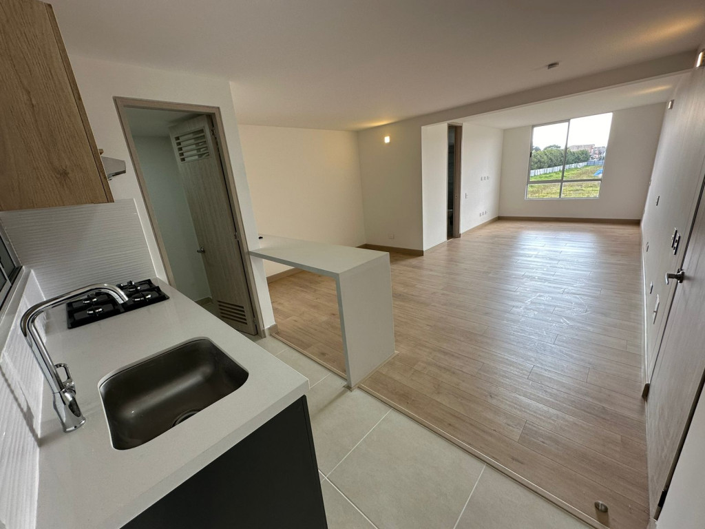 Lindo Aparta-estudio de 41 mts, una habitación con closet, un baño, sala comedor, cocina abierta, zona de lavandería, pisos en laminado, un solo ambiente, parqueadero descubierto para un vehículo, edificio con ascensor, excelente ubicación, cerca a la variante Cajicá Zipaquirá, transporte publico, droguerías, centros comerciales, vigilancia las 24 horas, gimnasio, salón comunal, parque infantil, zona de juegos, BBQ y parqueadero para visitantes.