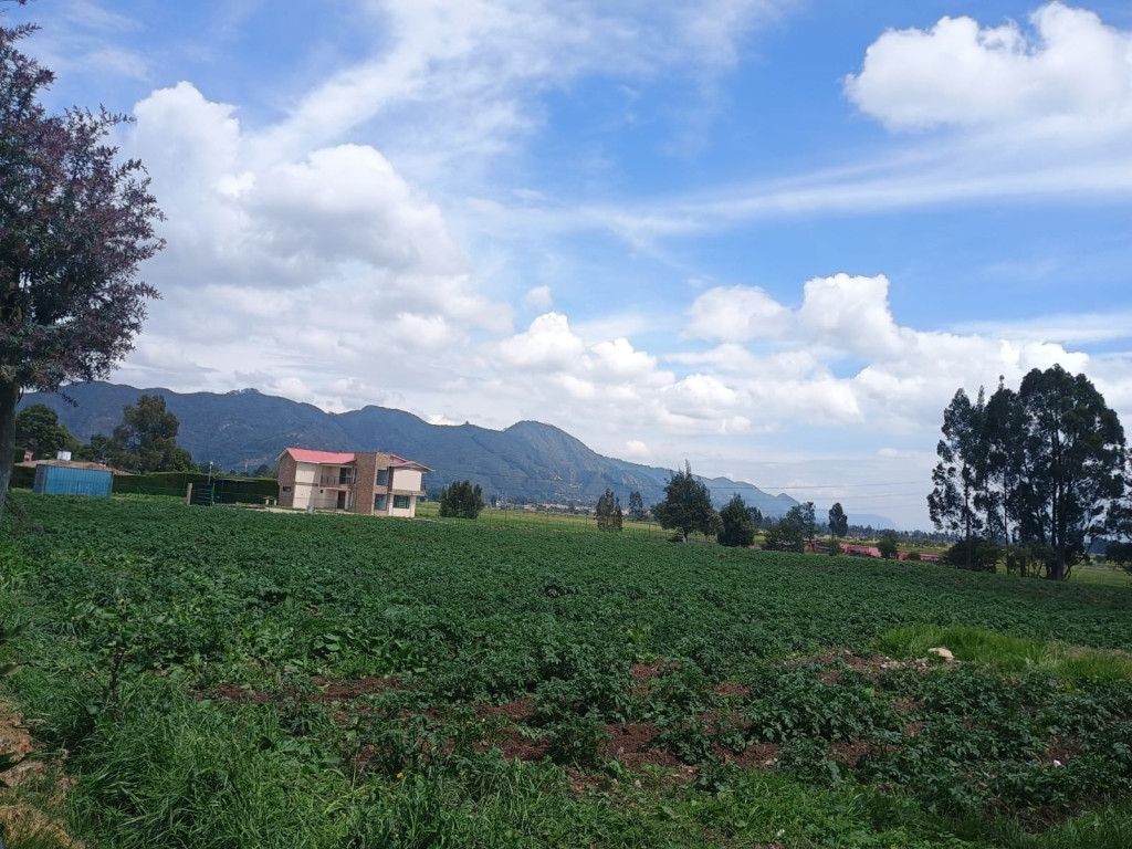 Lote para construir casa o apartamento, con un área de 119.28 m2, tiene de frente 9.40 mts y de fondo 12.56 mts, tiene licencia de construccion para casa de 2 pisos mas altillo, y parqueadero. servicios de agua y luz sobre la vía, sector campestre con linda vista a las montañas, sector residencial, se encuentra ubicado a 10 minutos del parque principal de cota.