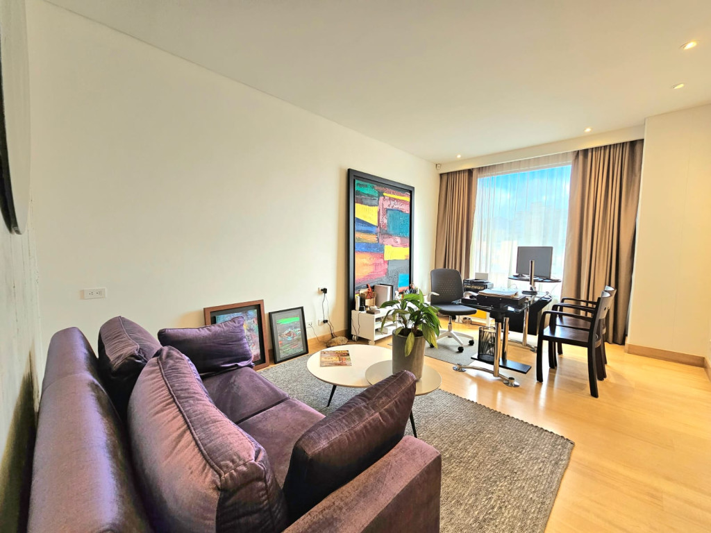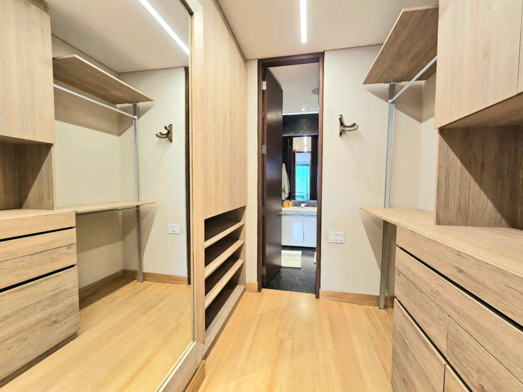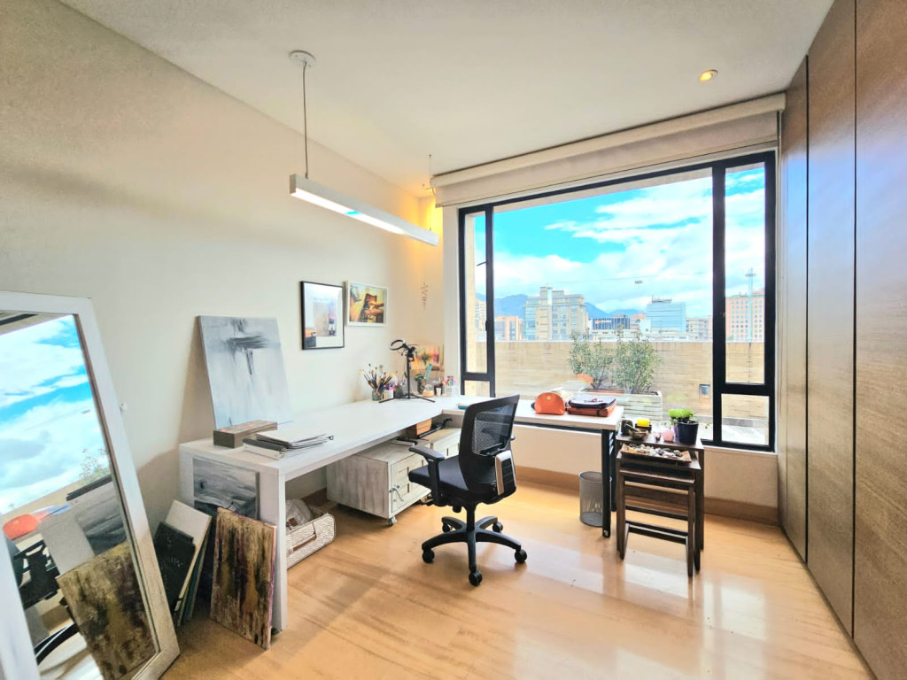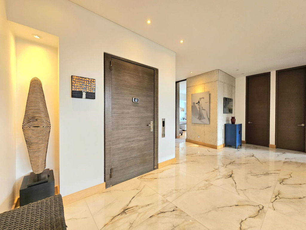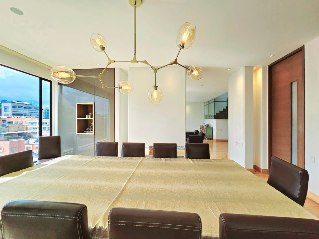Espectacular apartamento PH dúplex de 450 m² más 150 m² de terrazas. Cuenta con acabados de lujo, sistema de seguridad, cajas fuertes, puertas de seguridad, tecnología domótica, calefacción, paneles solares y caldera propia. En el primer nivel se encuentran cuatro alcobas amplias, baños con walk-in closet, iluminación natural, sala y comedor independientes con chimenea a gas, sala de estar, estudio, baño social, cocina integral con gas natural, lavavajillas, comedor auxiliar, zona de lavandería independiente, alacena, y cuarto y baño de servicio. En el segundo nivel se encuentra la alcoba principal con jacuzzi y walk-in closet, tres alcobas con sus respectivos baños, un cuarto útil, cuarto de linos y sala de estar. Tiene cuatro salidas a la terraza, la cual cuenta con una zona cubierta y área de BBQ. El apartamento se complementa con seis garajes y un depósito de buen tamaño.