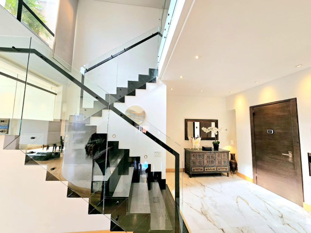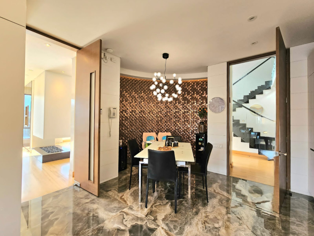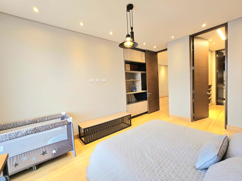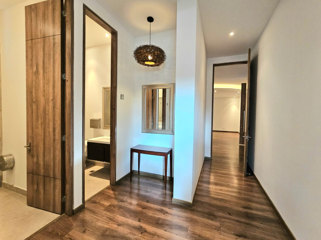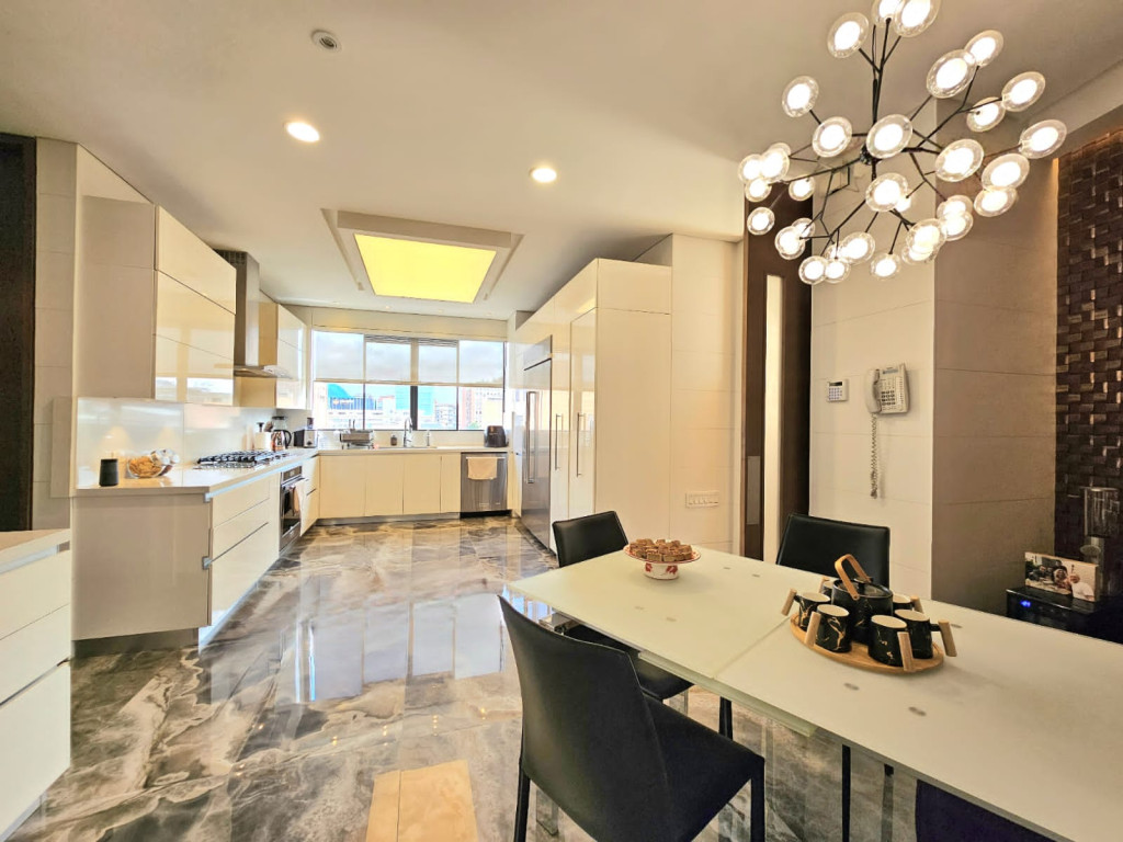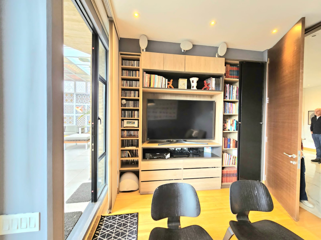 Espectacular apartamento PH dúplex de 450 m² más 150 m² de terrazas. Cuenta con acabados de lujo, sistema de seguridad, cajas fuertes, puertas de seguridad, tecnología domótica, calefacción, paneles solares y caldera propia. En el primer nivel se encuentran cuatro alcobas amplias, baños con walk-in closet, iluminación natural, sala y comedor independientes con chimenea a gas, sala de estar, estudio, baño social, cocina integral con gas natural, lavavajillas, comedor auxiliar, zona de lavandería independiente, alacena, y cuarto y baño de servicio. En el segundo nivel se encuentra la alcoba principal con jacuzzi y walk-in closet, tres alcobas con sus respectivos baños, un cuarto útil, cuarto de linos y sala de estar. Tiene cuatro salidas a la terraza, la cual cuenta con una zona cubierta y área de BBQ. El apartamento se complementa con seis garajes y un depósito de buen tamaño.