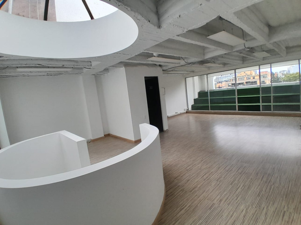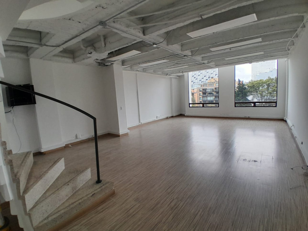 Espectacular oficina dúplex de 123 m², ubicada en edificio con ascensor y vigilancia diurna de 8:00 a.m. a 5:00 p.m. Cuenta con dos amplios espacios de trabajo, tres baños, cocineta, terraza y balcón, además de piso en madera laminada y una agradable vista exterior que aporta excelente iluminación natural. Incluye tres parqueaderos (dos en línea y uno independiente) y el edificio ofrece parqueadero para visitantes, brindando comodidad para colaboradores y clientes. Ubicada en zona estratégica con fácil acceso a transporte público, es ideal para empresas que buscan un espacio funcional, representativo y con áreas al aire libre para complementar su operación.