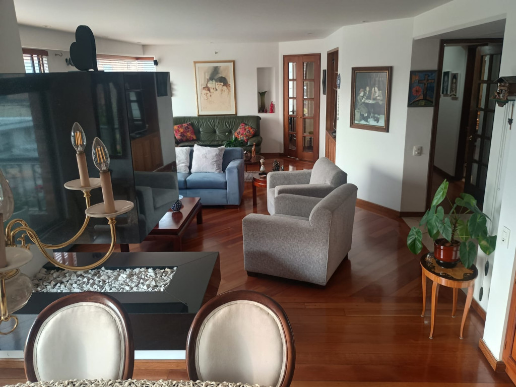 Excelente apartamento de 3 alcobas, con baño en la alcoba principal, baño de alcobas, baño social y cuarto y baño de servicio. Cuenta con estudio, sala de estar y sala y comedor independientes, brindando espacios amplios y funcionales. La cocina está equipada con estufa y calentador a gas, y el apartamento dispone de chimenea a gas, pisos en mármol y madera, vista exterior y un balcón amplio, que aportan confort y elegancia. Incluye 3 garajes independientes y depósito. Ubicado en edificio con ascensor, garajes para visitantes, salón comunal, seguridad automatizada y planta eléctrica de suplencia total, ofreciendo comodidad y respaldo ante cualquier eventualidad. Se encuentra cerca de vías principales, estaciones de TransMilenio y zonas comerciales, con excelente conectividad. Ideal para quienes buscan amplitud, ubicación y calidad de vida.